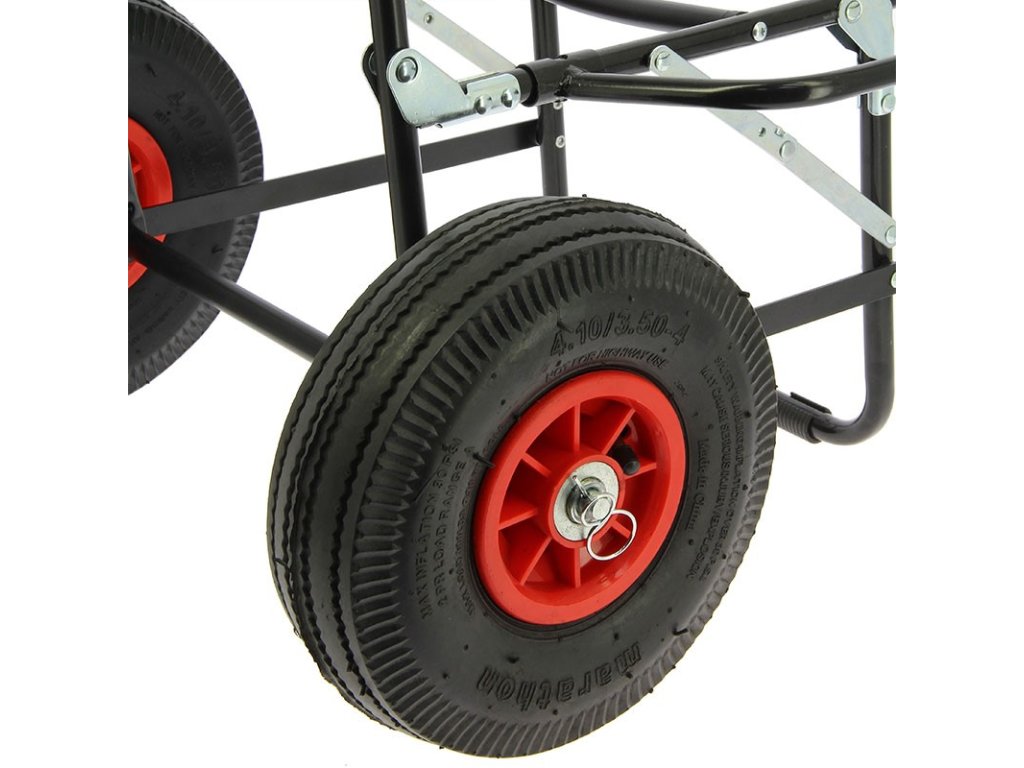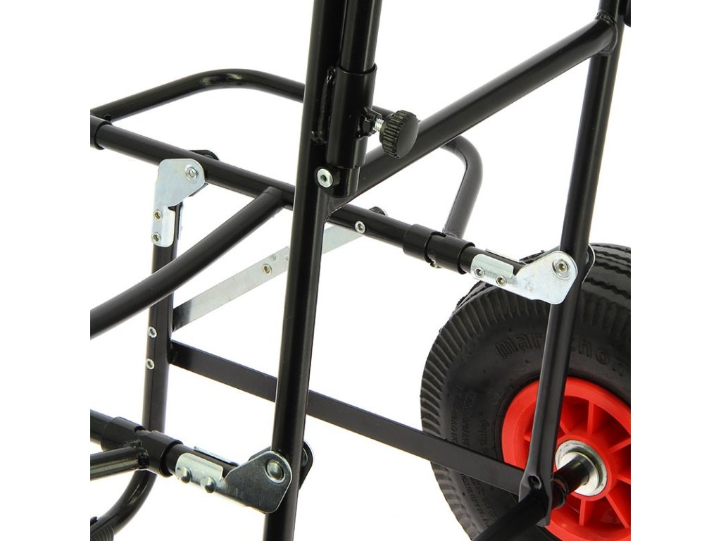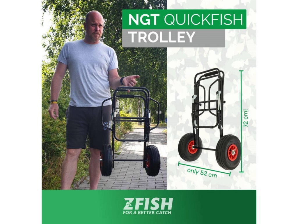 Rybářský vozík NGT Quickfish Trolley je novinka od NGT, jedná se o kompaktní vozík s nafukovacími koly o průměru 25 cm a pevnou ocelovou kontrukcí, který je ideálním pomocníkem na krátké výpravy. Vozík je neocenitelným pomocníkem v případě, že se Vaše lovné místo nachází na vzdáleném místě a vozidlem nepřístupném terénu. Jeho malé transportní rozměry zabírají ve vozidle minimum prostoru, přesto však s přehledem odveze potřebné rybářské vybavení na časově kratší vycházky. Ocelová konstrukce je dostatečně pevná a odolná a tak vozík uveze téměř vše co se na něj vejde. Na bocích je vozík opatřen dvěmi sklopnými bočnicemi, které rozšiřují úložnou plochu a také slouží k lepší fixaci přepravovaného vybavení. Dostatečně velká a široká nafukovací kola v kombinaci s malými rozměry vozíku spolehlivě zajistí pohodlný pohyb težším terénem, zarostlými cestami, přes nerovnosti ale i blátem, případně sněhem. Manipulaci s vozíkem a transport vybavení ještě zpříjemní a usnadní EVA úchop a snadno výškově nastavitelné madlo, které si nastavíte přesně dle potřeby. NGT Quickfish Trolley Vás tedy zcela jistě velmi mile překvapí svými kompaktními rozměry a díky pevné konstrukci a velkým kolům Vám při přesunu výbavy od vozu na lovné místo vykouzlí usměv na tváři.